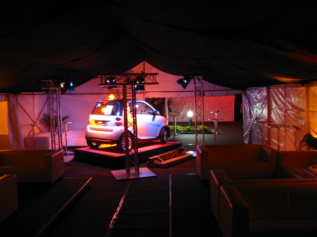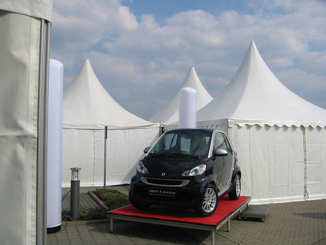 Im Zuge der Einführung des Smart 4/2 beauftragte uns im Jahr 2007 das Smart Center Dresden mit der Konzeption und Umsetzung der dazugehörigen Veranstaltung. Neben Pagodenzelten, dem passenden Mobiliar und stimmiger Licht- und Tontechnik kamen Bühnen zum Einsatz, auf dem das Auto den Besuchern präsentiert wurde.